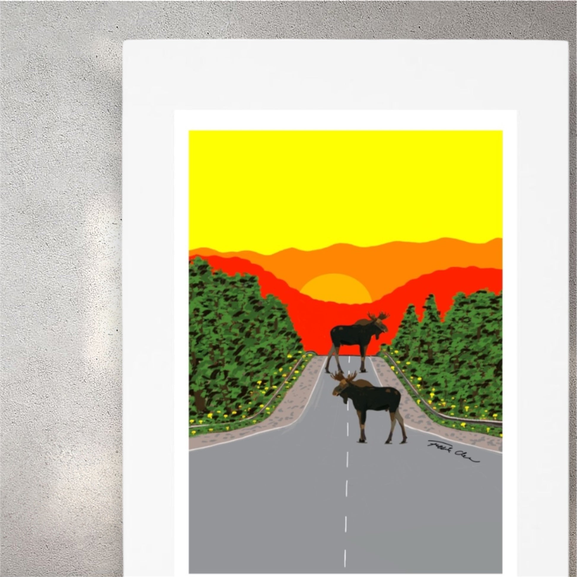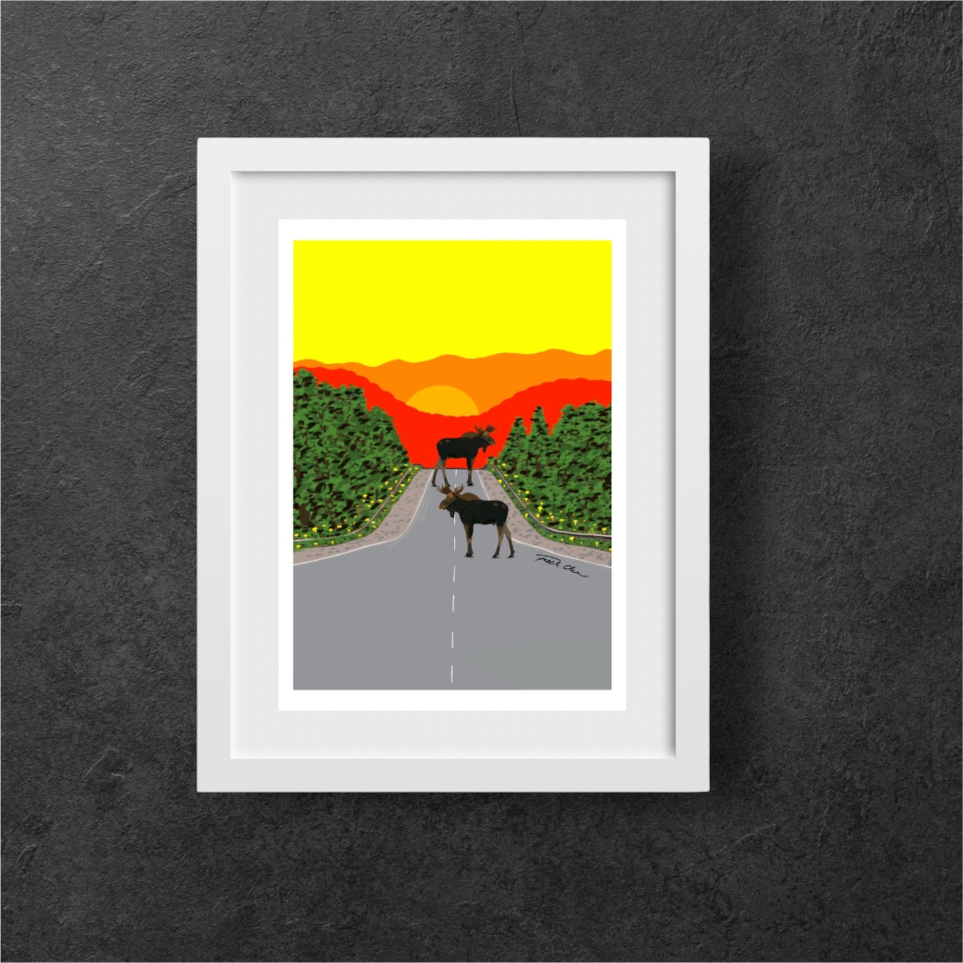 Älgarna på vägen 30x40cm